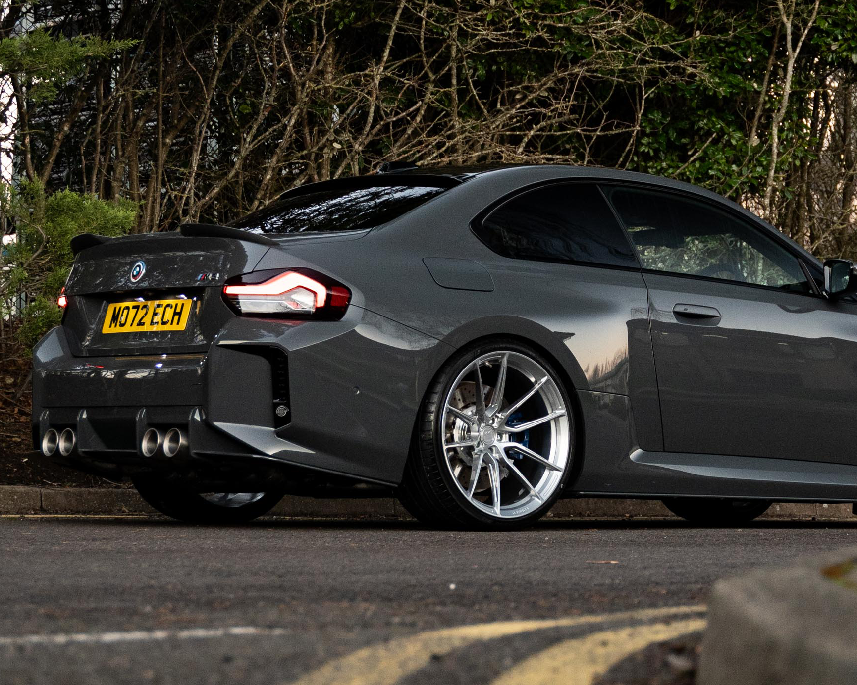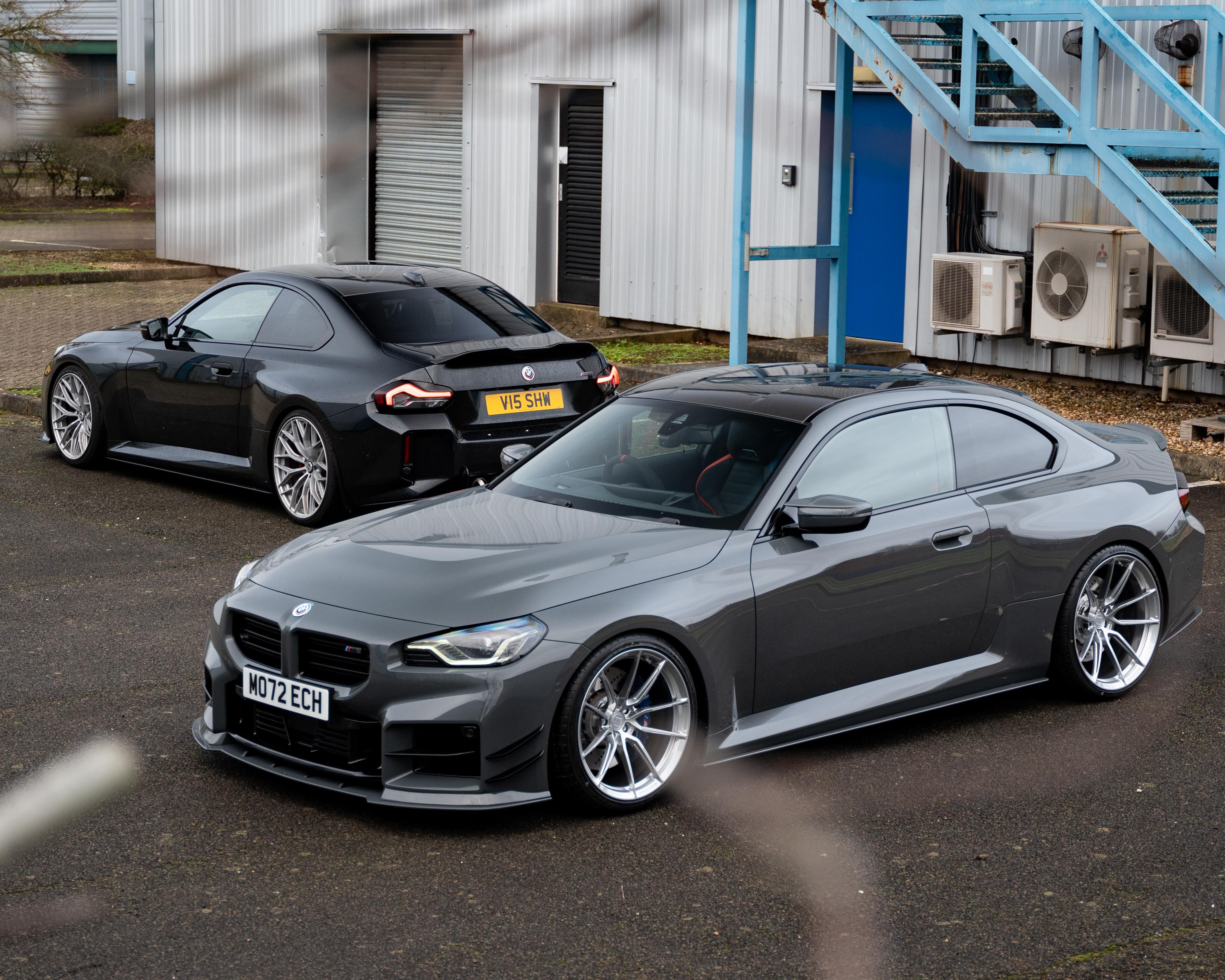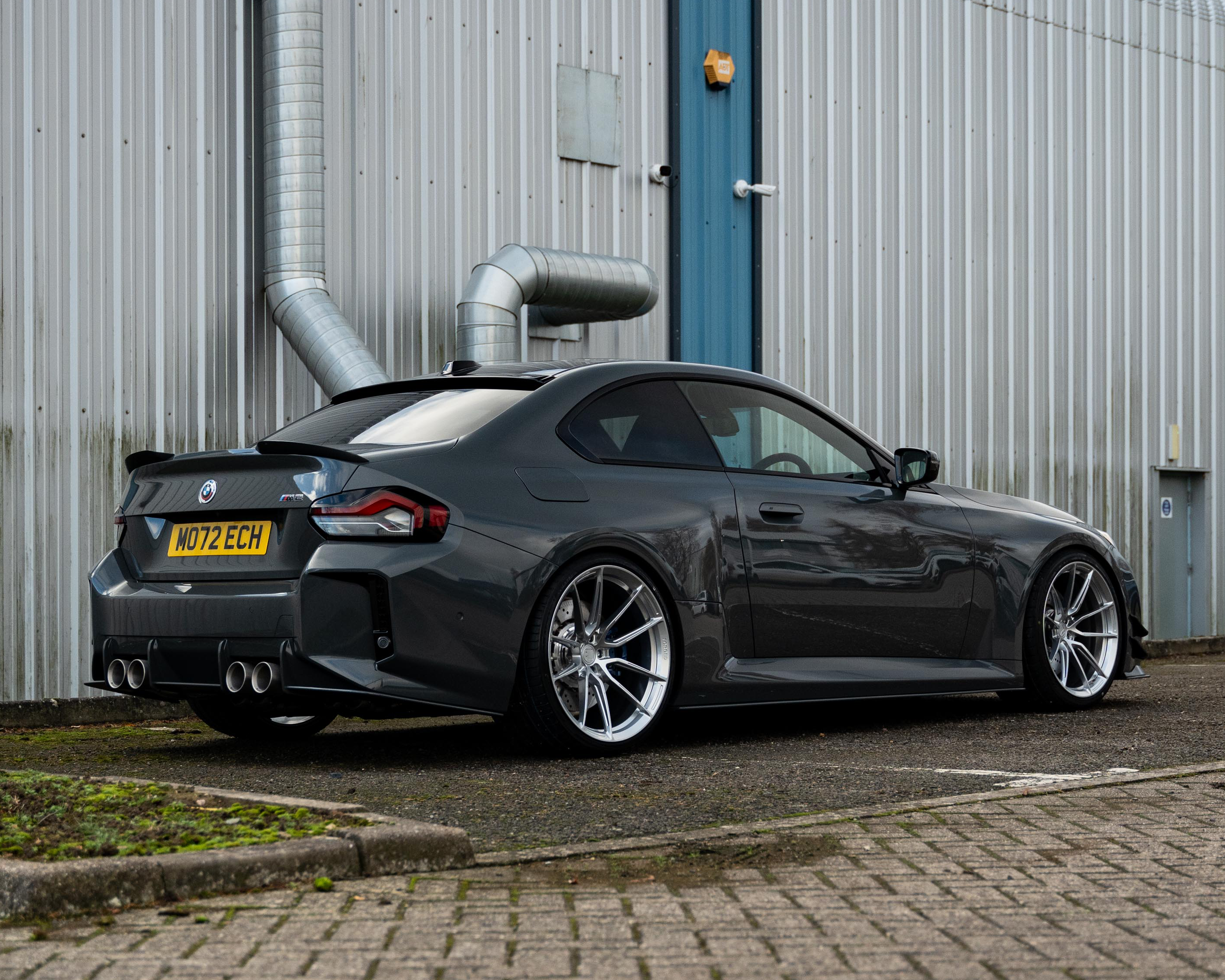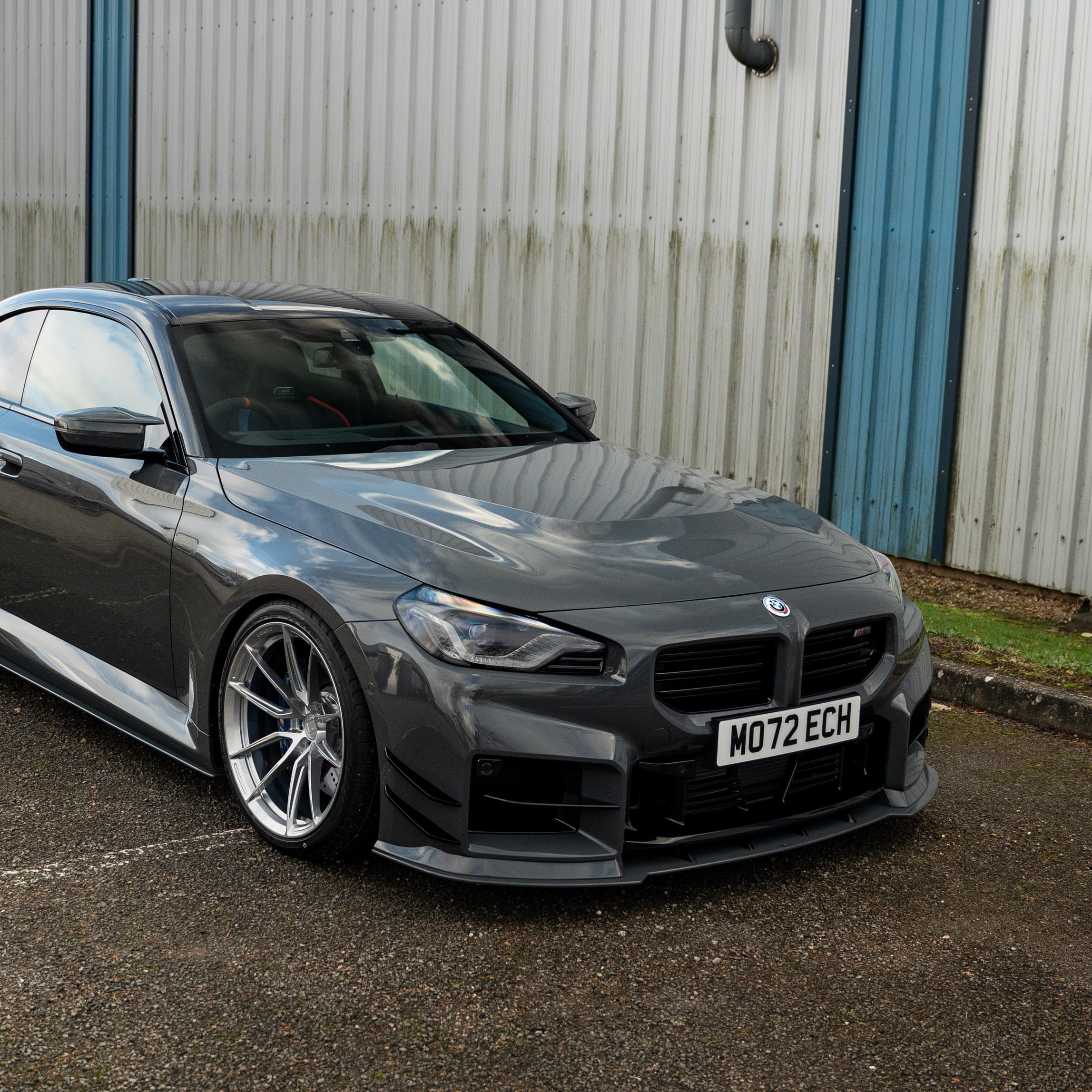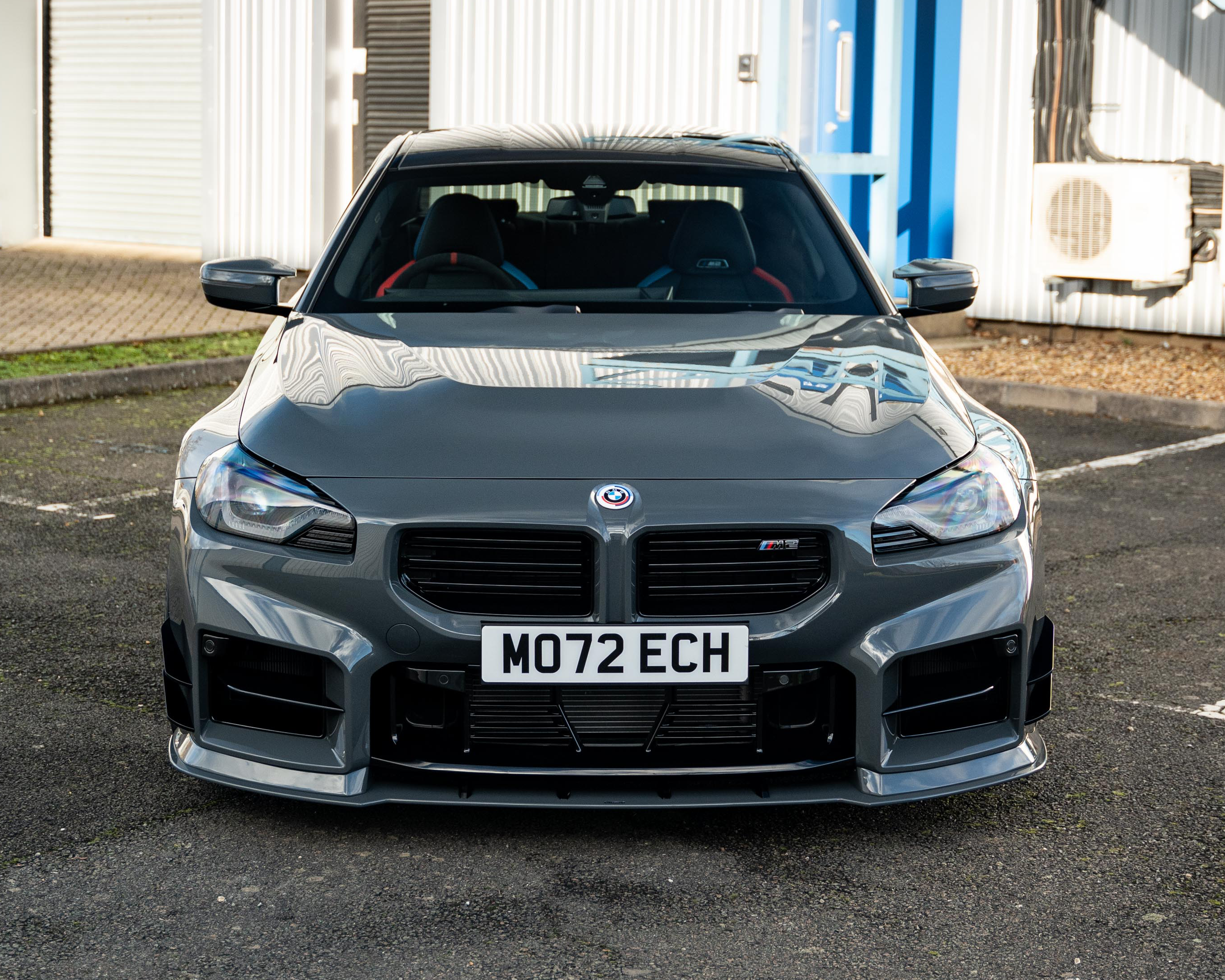 We’re going to look at our Brand-new G87 M2 Demo Car in the custom Lamborghini paint colour ‘Grigio Telesto’, as well as showing it off with another G87 M2 in BMW’s ‘Black Sapphire’. The M2 is a fantastic vehicle, naturally menacing and a big-body that provides a feeling of confidence and power on the road. Coming in at 437 BHP, this 6 cylinder, 8 Speed automatic has been customised with our custom ‘MO72 ECH’ registration plate to make it our own.