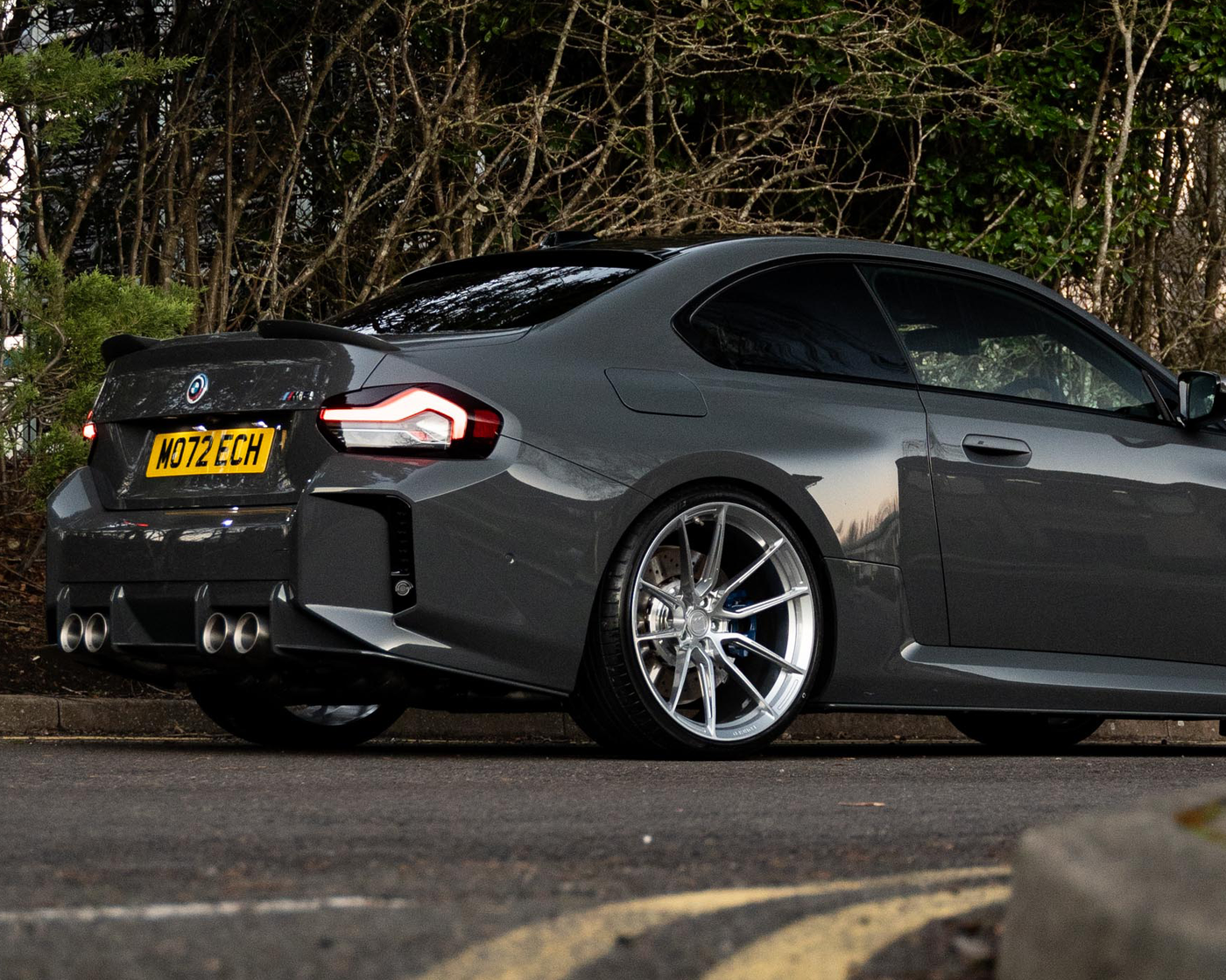 For added menace, we chose AC Schnitzer's M2 Front splitter, tailor-made to the G87 M2. Utilising ‘ASA’ (Acrylnitril-Styrol-Acrylester), this part provides weather-resistance, stiffness and incredibly high strength. The aesthetic benefit of this addition is second to none, it subtly emphasises the styling lines of the base vehicle, all while providing the body with striking new contours. However, this Front splitter doesn’t just benefit the looks, it can increase downforce by up to 60KG on the front axle compared to the standard vehicle.