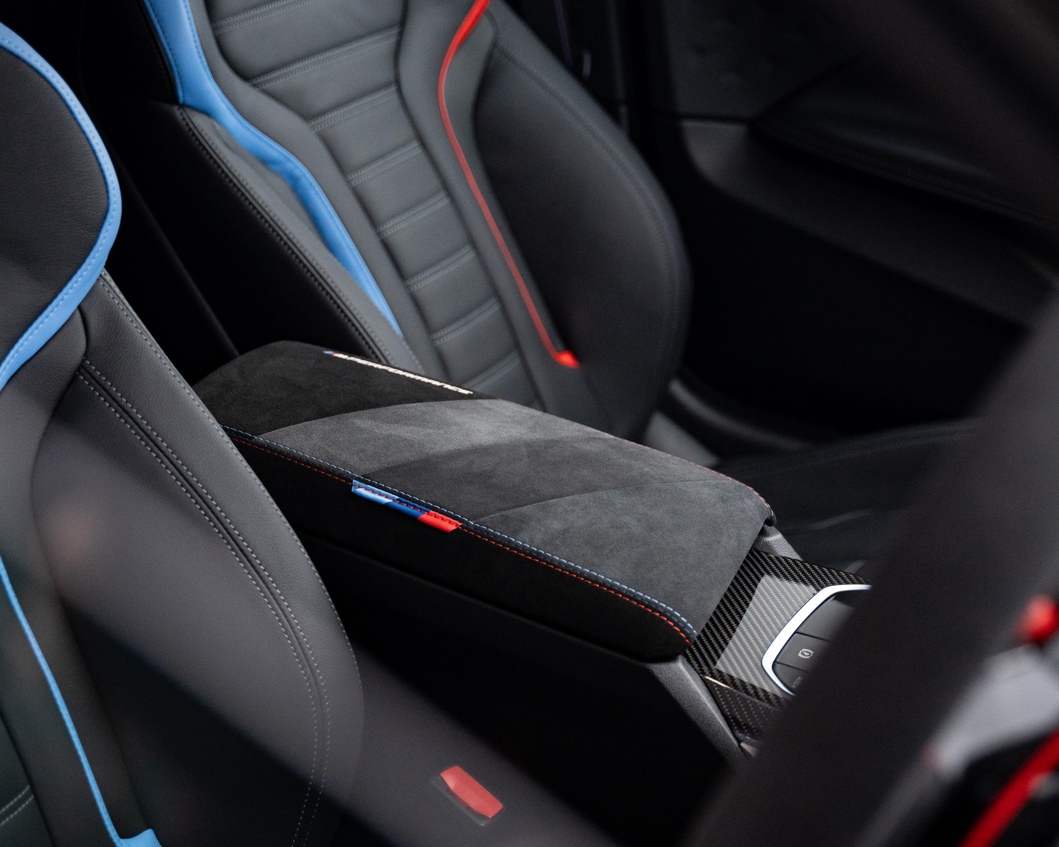 Now, little might not be the right word for these additions - they finish off the look of this car and add undisputed class to the aesthetic and feel. Things like the 50th anniversary BMW badge, giving us those classic ‘M’ colours and ever so quietly warning the road of its capabilities. Inside the car, there’s an Alcantara M Performance Steering Wheel, that pairs fantastically with the M2 seats - providing a splash of colour in such a dark and fierce environment. We also removed the resonator to feel (and hear) the roar of the BMW.