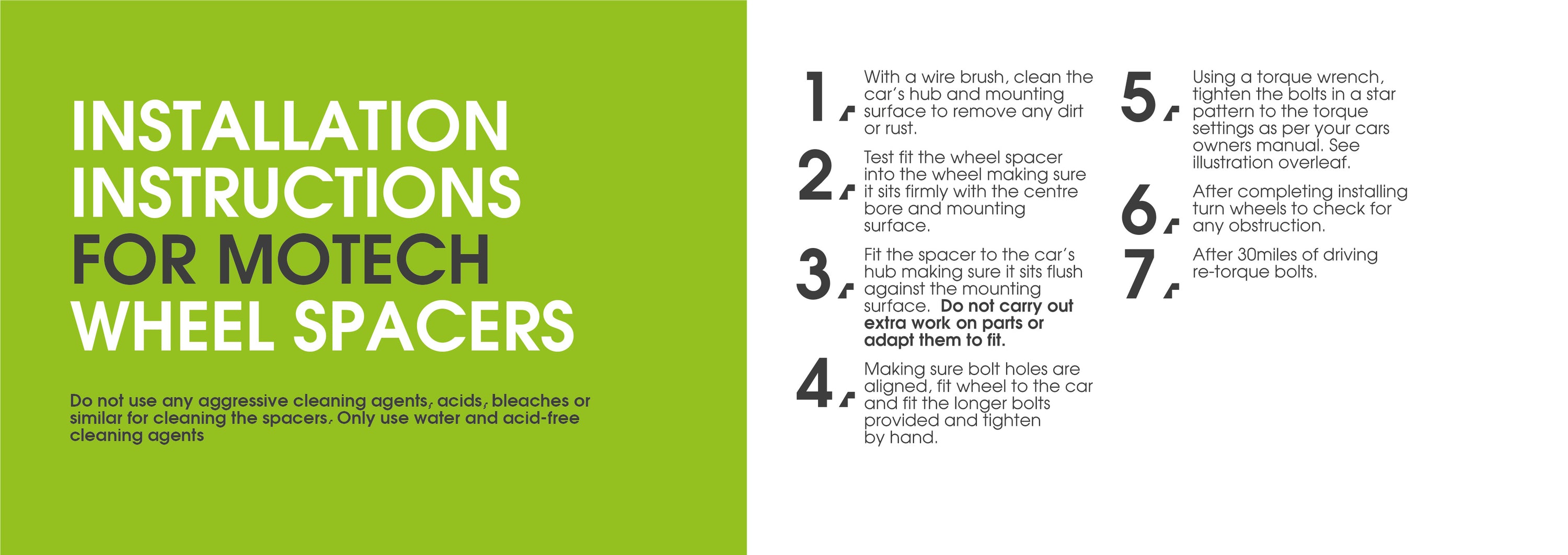 The spacers have CNC-machined holes and are hub centric for the highest level of accuracy, they also have our laser-cut Motech logo and specifications for easy identification, as well as a special backlash groove design for a perfect fit.